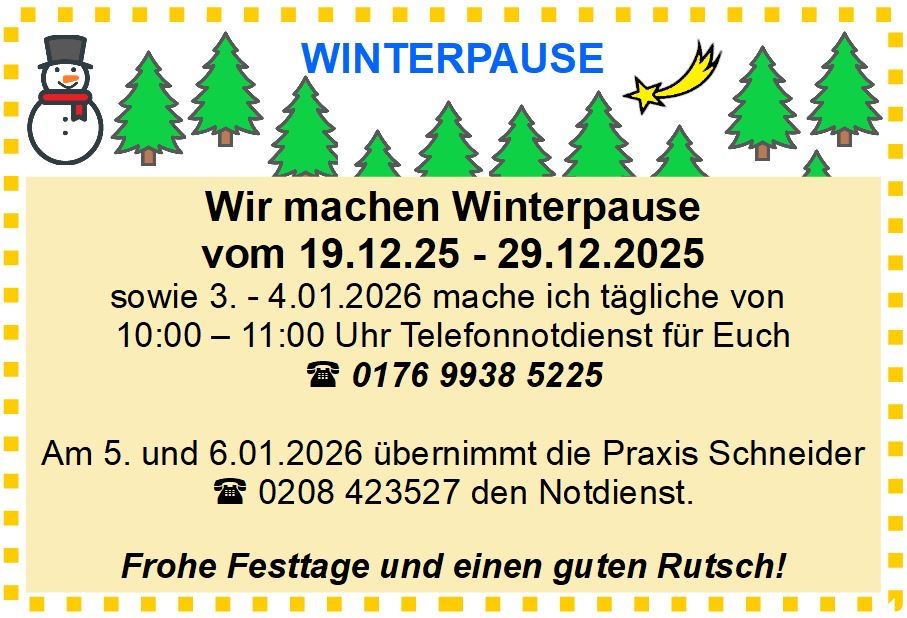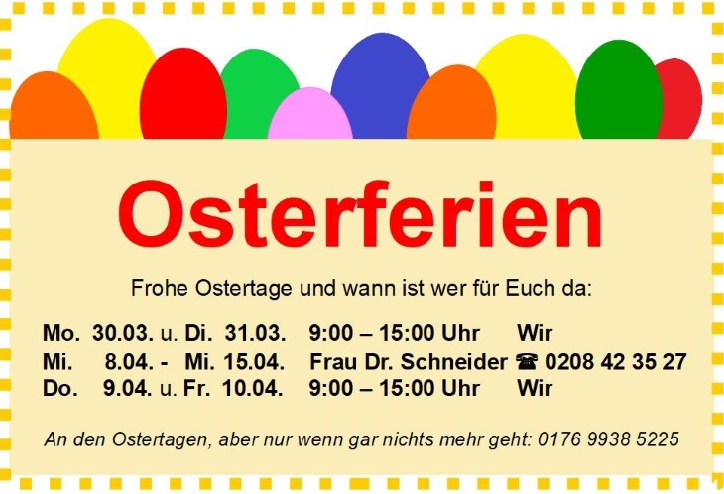 Daher: Wenn ihr wisst, dass ihr nicht pünktlich sein könnt, ruft uns bitte kurz an und informiert uns frühzeitig. So können wir die Zeit für andere Patienten nutzen.